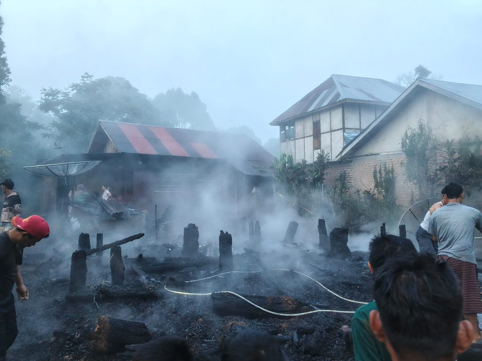fajarbengkulu, Tubei ,– Warga Desa Gunung Alam, Kecamatan Tubei, Kabupaten Lebong dikejutkan dengan musibah kebakaran yang menghanguskan dua unit rumah warga pada Kamis (26/3/2026) dini hari. Insiden yang terjadi saat warga masih terlelap ini menimpa kediaman milik Samidi (75) dan Rison (50).