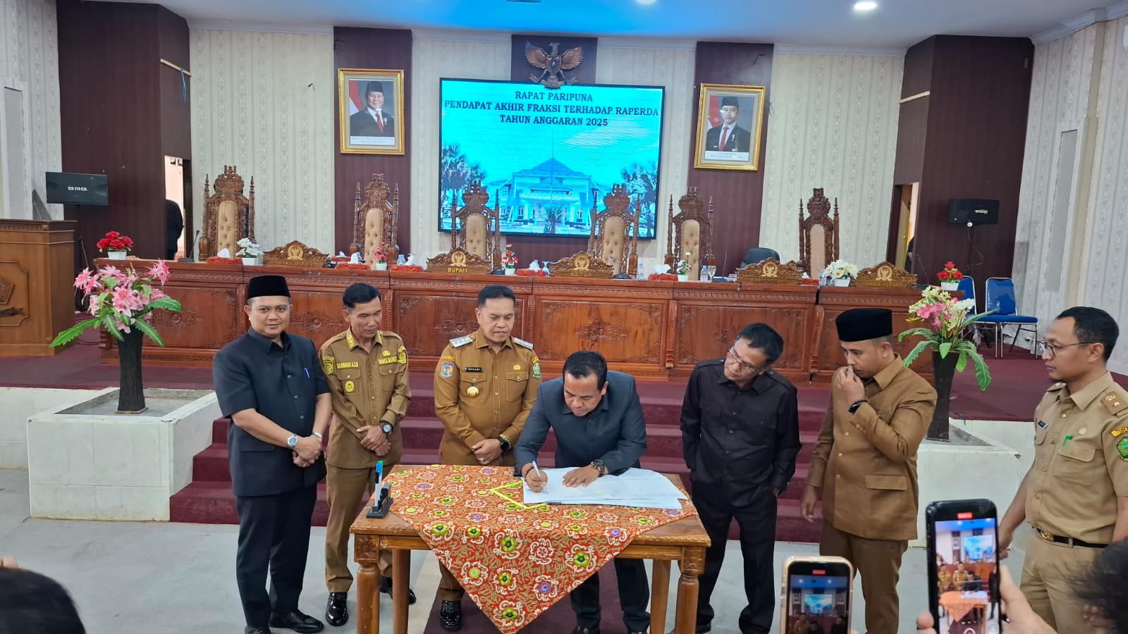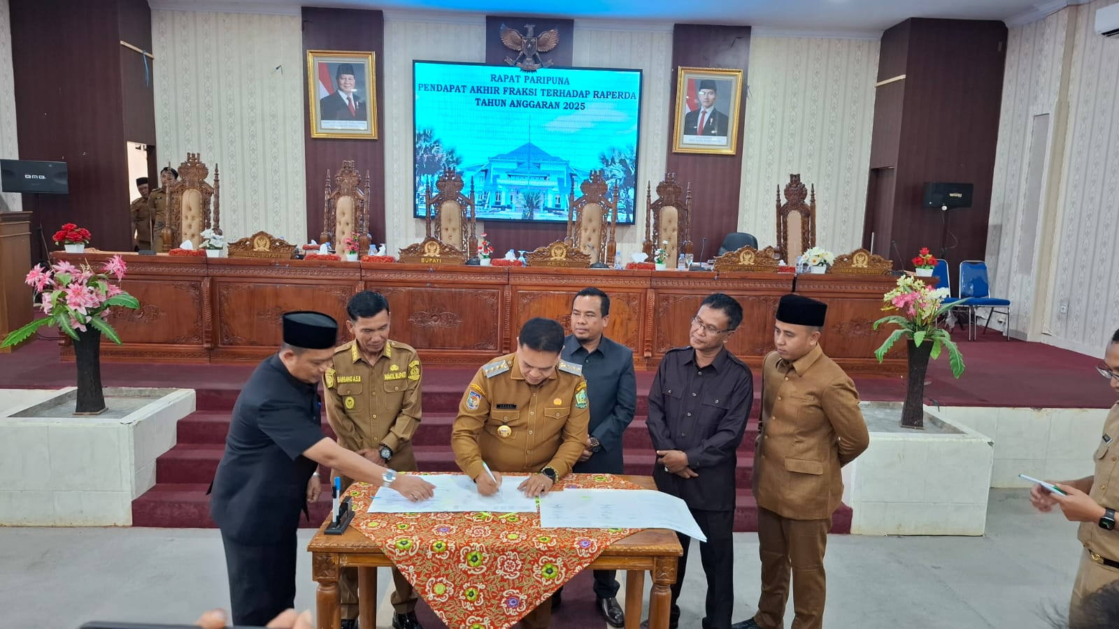 “Apresiasi yang setinggi-tingginya untuk DPRD, baik ketua, wakil ketua dan seluruh anggota mereka lengkap, justru kita yang malu nih, terutama camat tiga orang masih perlu dijewer telinganya. Kami mengucapkan terima kasih atas pengesahan APBD perubahan 2025 menjadi Perda,” ucap Azhari.(Act)